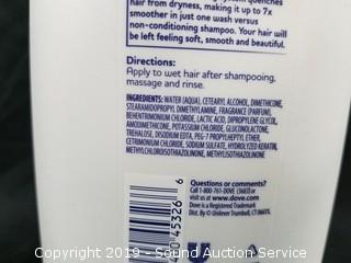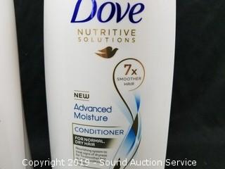 Item Description: Both bottles are mostly full. Pantene Pro-V advanced care 5-in-1 38.2oz, and Dove advanced moisture conditioner 40oz.