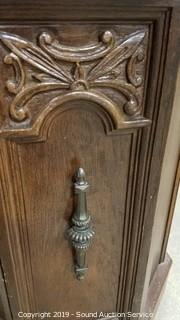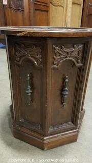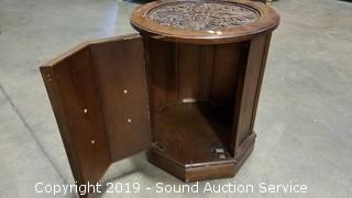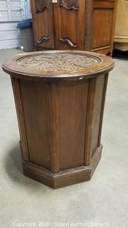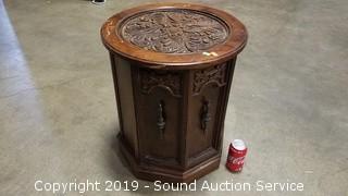 Lot #0024: Vtg. Octagon Carved Top Side Table Cabinet
