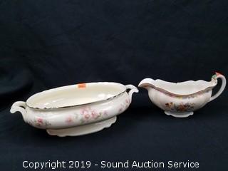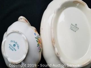 Item Description: Lenox Vase, Homer Laughlin Virginia Rose Serving Bowl, Johnson Bros. Gravy Boat, English Brambleberry, & more. Mostly English, German & French. Many do have chips please come in to preview.