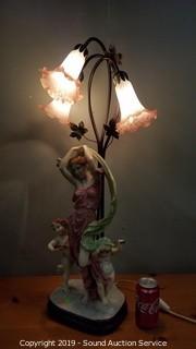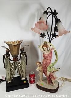 Lot #0025: 2 Beautiful Art Nouveau Lady Figure Lamps