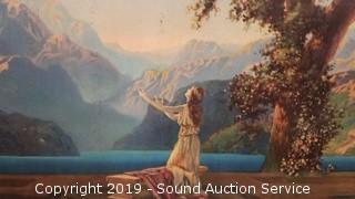 Item Description: Includes Maxfield Parrish 22" x 33.5". "Sonata" by M. Ditlef, 23" x 28.5" and "Pacific Bay" by R. Wood, has a beautiful frame. Frame fits a 40" x 24" piece of artwork, overall 45" x 29".