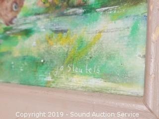 Item Description: One is a photo? on steel by Braydon Eaton, 2 are by Jo Sluetels & last I don't see a signature but is my favorite looks like a desert sunset oil painting. 10-1/2" x 14" to 17" x 21".