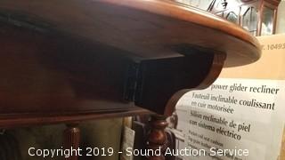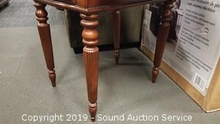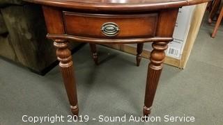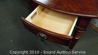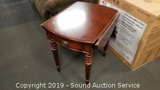 Item Description: Has a single drawer. Not sure if it actually mahogany or just stained that color, more modern. Good condition. 27" H x 22-1/2" - 38" W x 27" D.