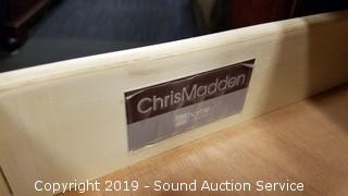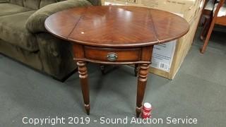 Lot #0012: Beautiful Chris Madden Mahogany Drop Leaf Table