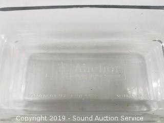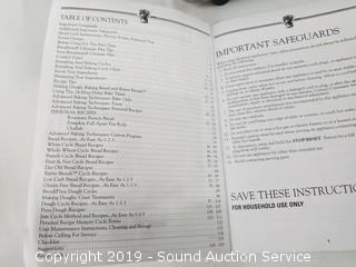 Item Description: Loaf pans are 8" by Anchor Hocking. Bread maker is black and stainless, with owners manual, works. 12" H x 15" x 9".