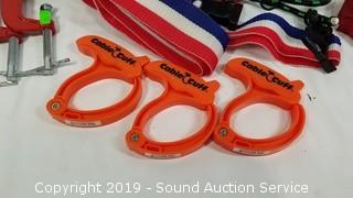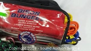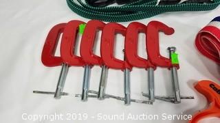 Item Description: Various lengths of bungee cords, (6) 2" C-Clamps, ratchet straps and more.