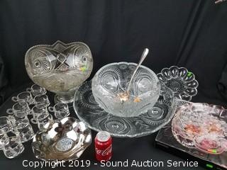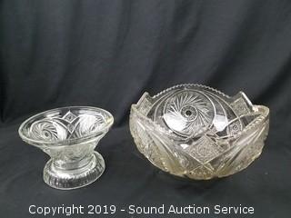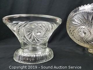 Lot #0141: Depression Glass Punch Bowls & Serving Pieces