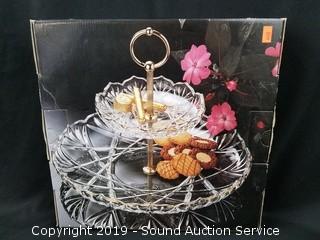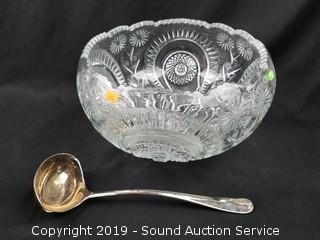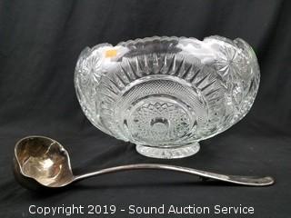 Item Description: Includes a pedestal punch bowl with 12 cups (a couple of chips on the bowl), large punch bowl with ladle, a 20" float, egg dish, 2 tier server and 2 decorative plates.