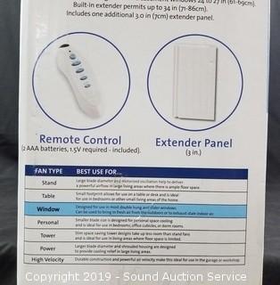 Item Description: Looks to be factory sealed. 3-Speeds, Reversible blades, Remote, Extendable Panels.