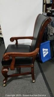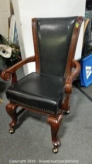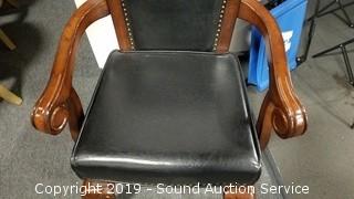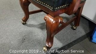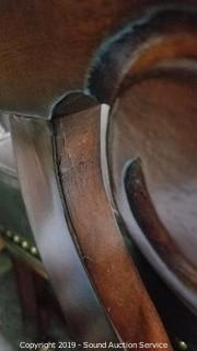 Item Description: Cabriole legs, nail head accents. In excellent condition. 40" H x 24" W. The left arm has some damage still functions as intended.