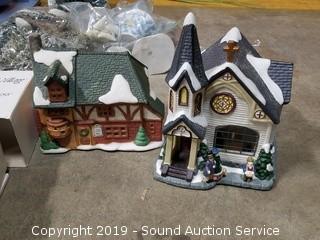 Lot #0052: Porcelain X-Mas Houses & Village Accessories