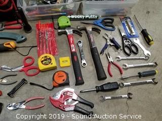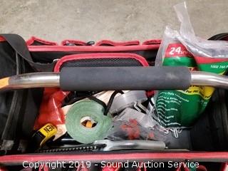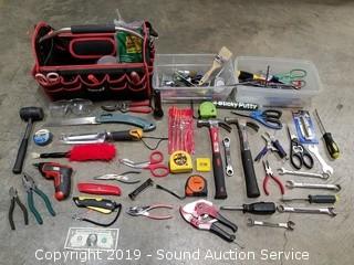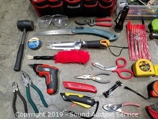 Item Description: Hammers, Screwdrivers, Pliers, Hex Keys, Tape Measures & Much More. Tool bag is 10" H x 16" x 9".