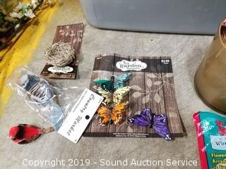 Item Description: Includes flowers, flower support sponges, birds, butterflies & pots. Tote is included, 16" H x 23" x 18".