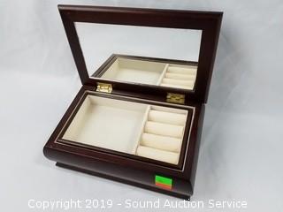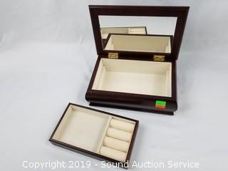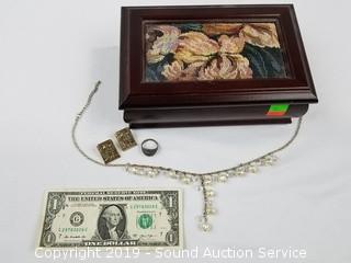 Lot #0104: Wood & Needle Point Jewelry Box w/Jewelry