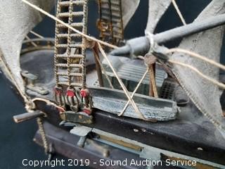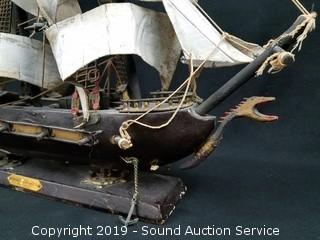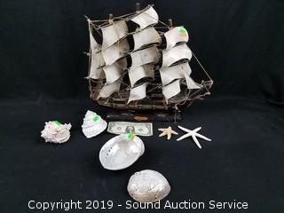 Lot #0131: Wood Replica Ship & Sea Shells