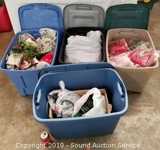 Item Description: All totes included and come with lids. Unsorted, some is still wrapped. Includes lights, stake outlets, bows, garland, faux snow, faux plants, ornaments and more.