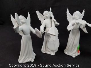 Item Description: Marked N with a crown "Dresden". 3 are missing the tip of their wing, violin player is missing it's bow. Approx. 5.5" H.