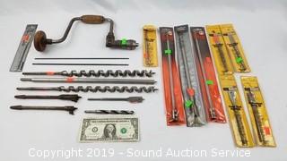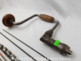 Lot #0027: Hand Auger Brace & Various Bits & Extensions