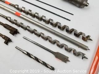Item Description: Brace is ratcheting by Victor. Bits are various sizes, spade bits auger bits & 12" extensions.