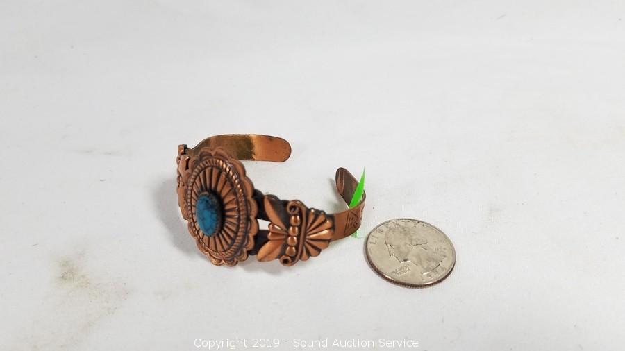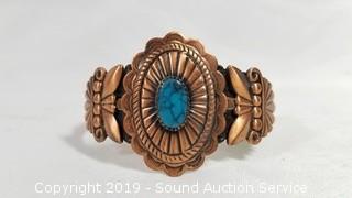 Lot #0217: Solid Copper & Turquoise Child's Bracelet