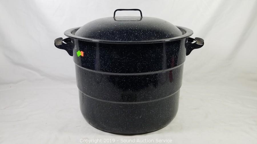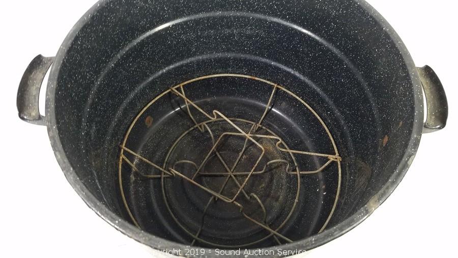 Lot #0242: Speckled Enamelware Canning Pot w/Lid & Insert