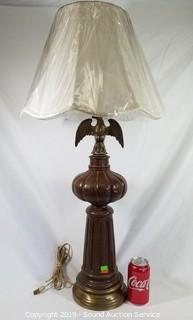 Lot #0076: Vtg. Wood & Brass Eagle Table Lamp