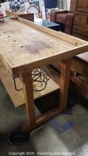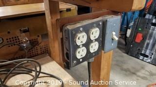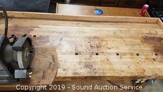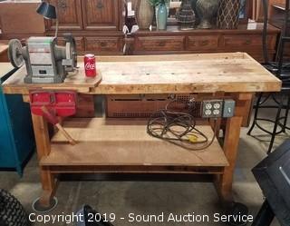Lot #0077: Wood Shop Bench w/Bench Grinder & Vise