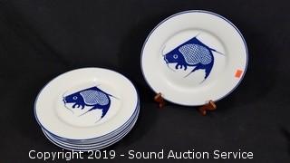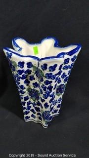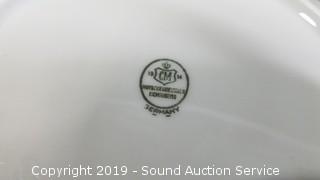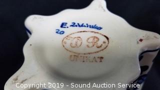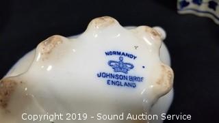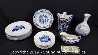Item Description: Unikat & other vases, Johnson Bros Normandy Gravy Boat, (6) 1914 CM Germany Fruit Plates, 1 Blue Danube Plate, 6 Koi Fish Plates.