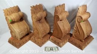 Lot #0118: 4 Beautiful Raw Wood Sconces or Corbels