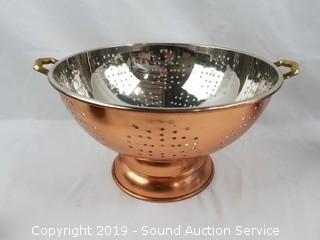 Item Description: The elbow is 3-1/8" dia. Pitcher is hand made in Iran. 10" tall. Also comes with a Copper colander.