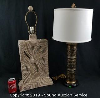 Lot #0307: Brass Pillar & Ceramic Table Lamps
