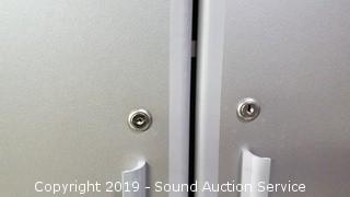 Item Description: Locking, does not come with a key. Adjustable shelves. Approx. 76" T x 35" W x 20" D. In good condition.