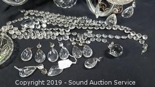 Item Description: Has been wired with a plug. Approx. 15" x 21" diameter, 34" chain. Most of the prisms are not attached.