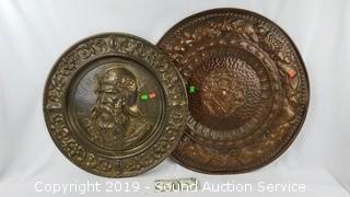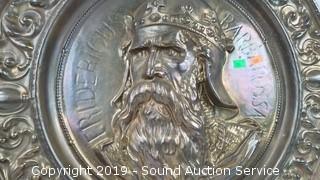 Item Description: Frederick Barbarossa was a holy Roman emperor. Approx. 20" and 24" diameter, brass and copper.