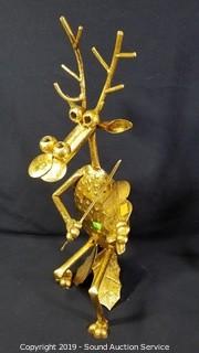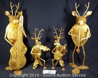Lot #0121: Metal Art Gold Painted Musical Quartet Reindeer
