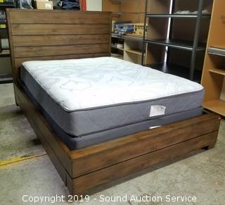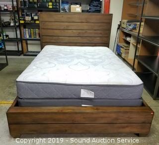 Item Description: Mattress has a small stain & one side board has a chip. 15" to 55" H x 64" W. Matches the next lot. Overall excellent condition.