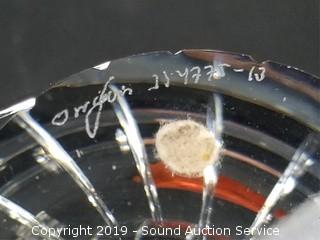 Item Description: Pitcher set included 9 glasses, the bowl is signed comes with display stand and has 3 chips on the rim. Bowl is 6-1/2" H x 10" x 8".