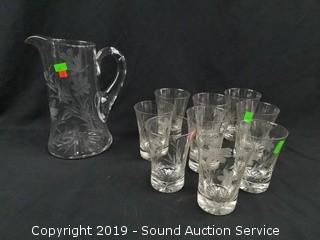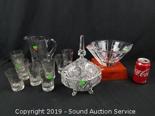 Lot #0068: Stunning Cut Crystal Bowl, Pitcher Set & Dish