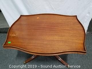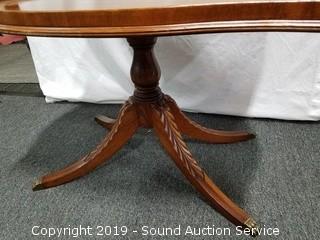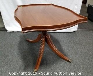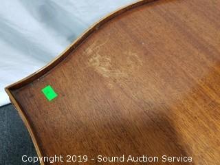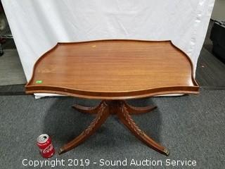 Item Description: Raised edge, craved legs & claw feet. Some damage to the top. 18" H x 26" x 18".