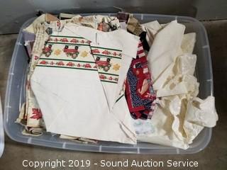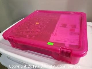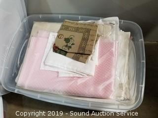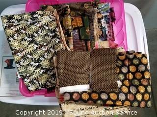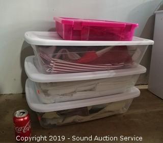 Lot #0045: 4 Low Profile Totes w/Lids & Crafting Fabric