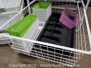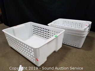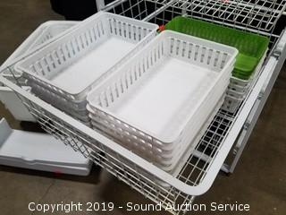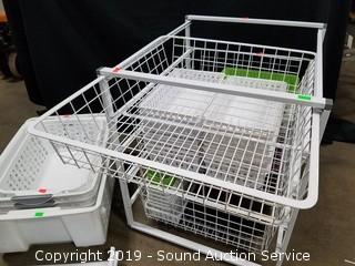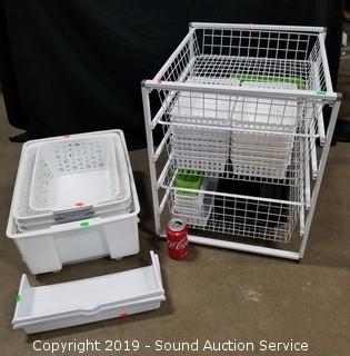 Lot #0032: Many Small Totes & 2-Drawer Wire Shelf