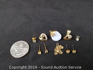 Lot #0339: 14k Gold Earring, Pendant & Other Studded Earrings