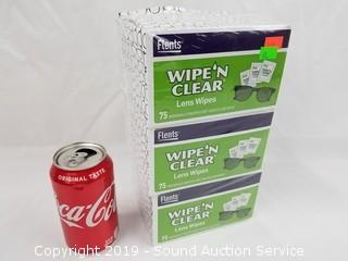 Lot #0065: 3 Flents Wipe'N Clear 75ct Lens Wipes