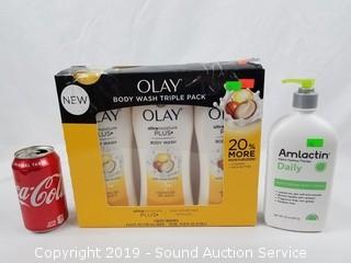 Lot #0095: 3 Olay Body Wash & 20oz Amlactin Lotion
