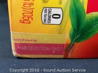 Item Description: Tea is BB March 2020, 312 bags. Sparkling water is S. Pellegrino, 20ct Cherry Pomegranate and 20ct Tangerine Wild Strawberry BB Aug & Oct 2019.