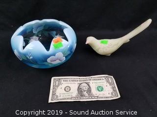 Lot #0247: Hand Crafted Fenton Art Glass Bird & Bowl