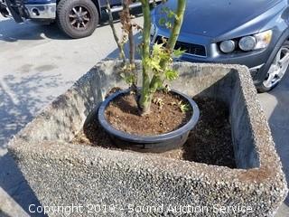 Lot #0341: Huge Exposed Concrete Planter w/Golden Maple Tree