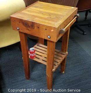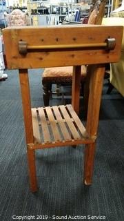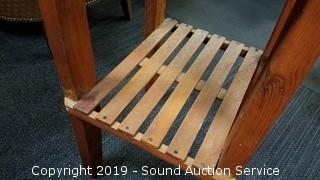 Item Description: Has a towel rack on one end and lower shelf. 35" H x 18-1/2" x 18".