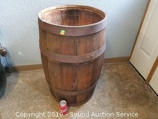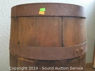 Lot #0310: Rustic Wooden Steel Banded Barrel