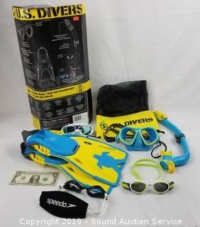 Lot #0057: US Divers Snorkel Set w/3 Speedo Goggles